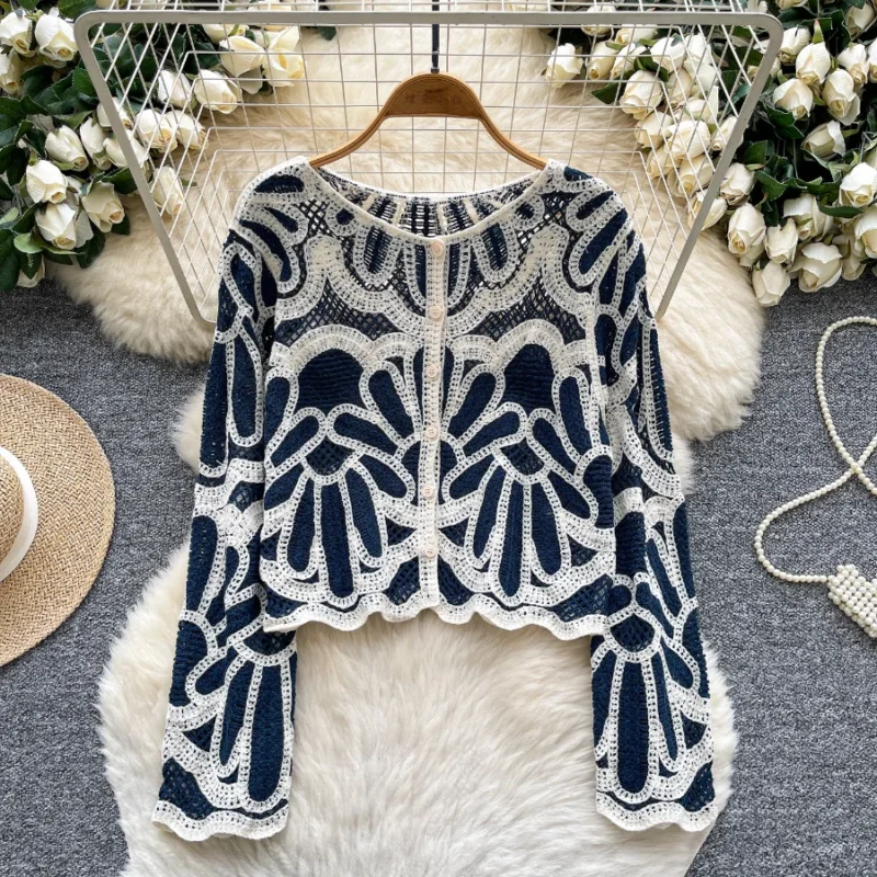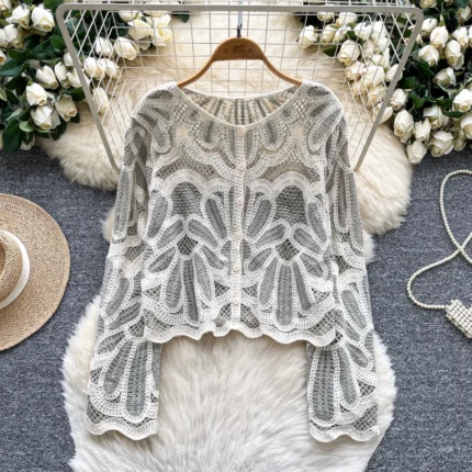 Niche Retro Heavy Embroidery Single-Breasted Shirt for Women