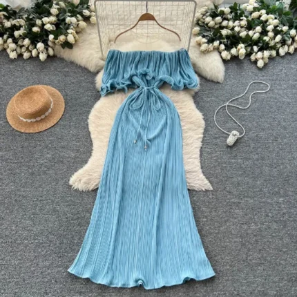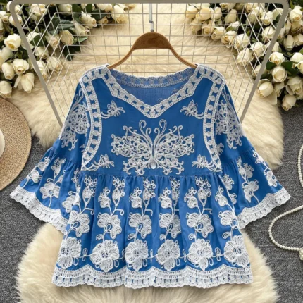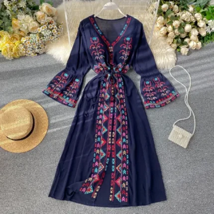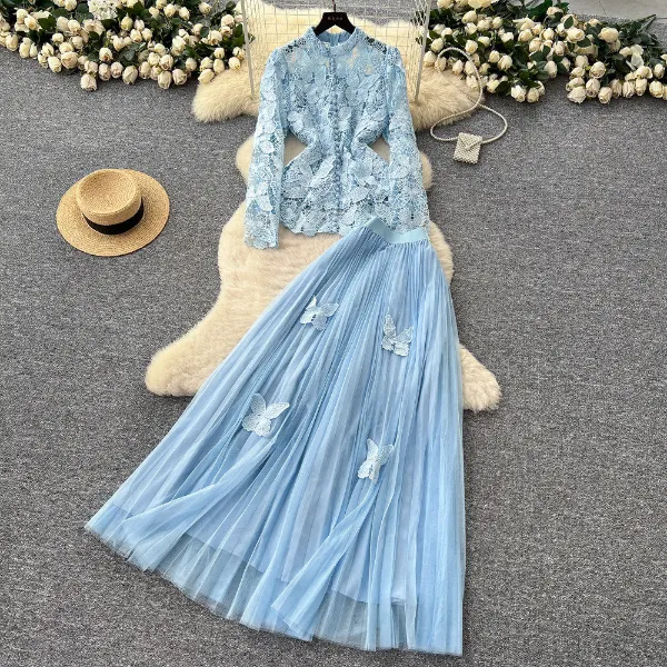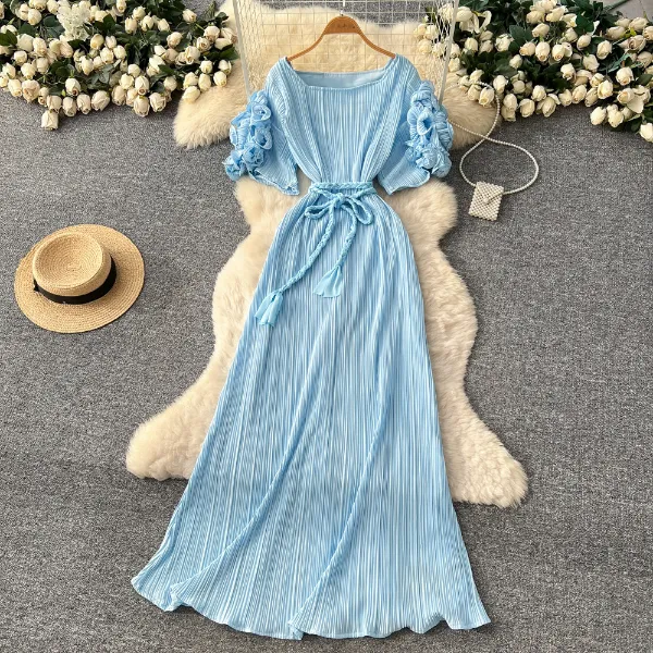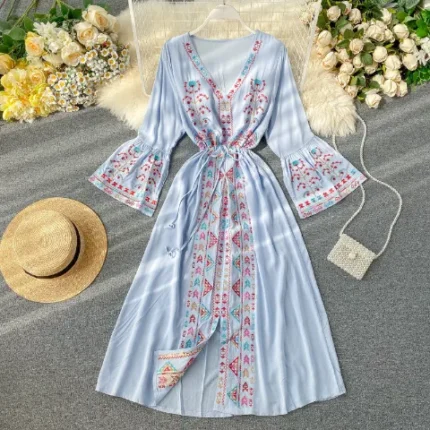 Light Blue Trendy Embroidered Maxi Dress