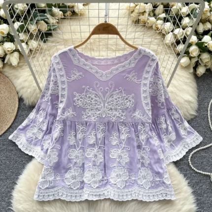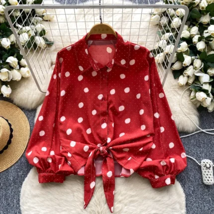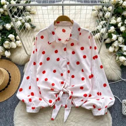 Pink Trendy Women’s Lantern Sleeve Shirt