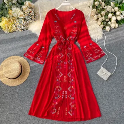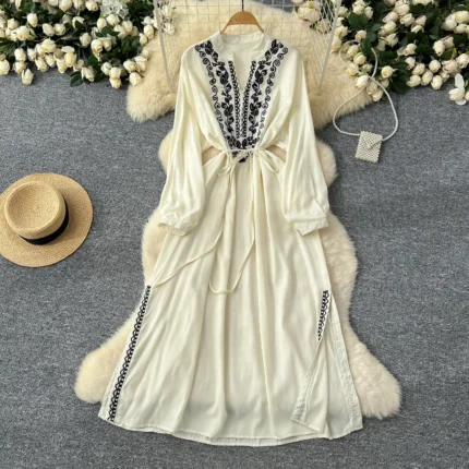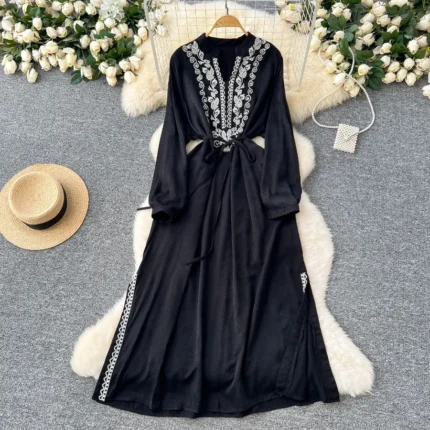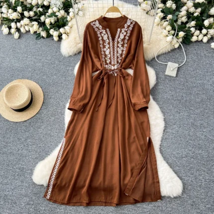 Khaki Trendy Embroidered Maxi Dress