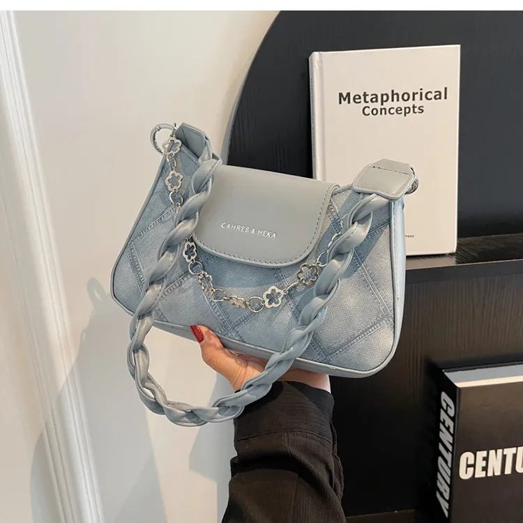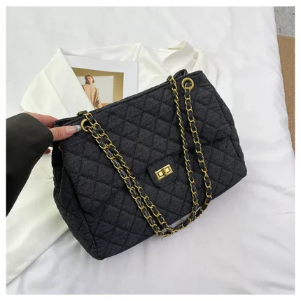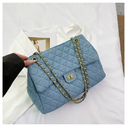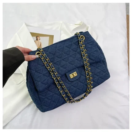 Large-capacity quilted denim bag for women