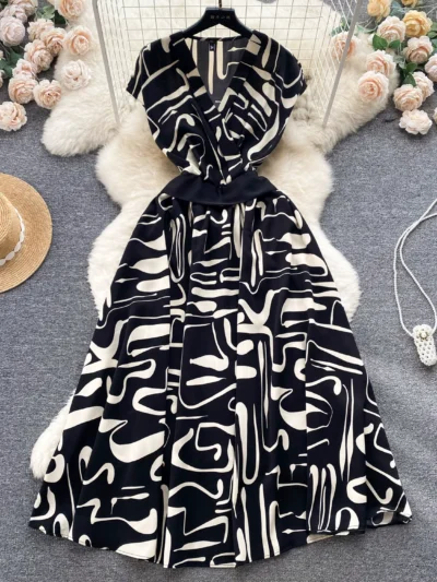 ৳ 1,999.00Embrace elegance and sophistication with our exquisite royal sister suit, designed to harmonize lightness and maturity for a stunning look. This outfit is crafted for individuals who appreciate refined fashion and timeless style, making it the perfect addition to your wardrobe. Whether you're attending formal events, work meetings, or casual gatherings, this ensemble guarantees effortless sophistication without compromising on comfort.V-neck trumpet sleeves slimming temperament printed chiffon dress