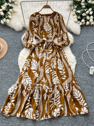 ৳ 1,640.00Embrace classic sophistication with the Retro V-neck Lantern Sleeves Belted Waist Temperament French Long Print Dress. Perfectly designed for those who seek refinement and elegance, this dress effortlessly blends timeless French aesthetics with contemporary fashion elements. Crafted with premium materials, it boasts intricate detailing that captures the essence of retro-inspired style while ensuring the utmost comfort.