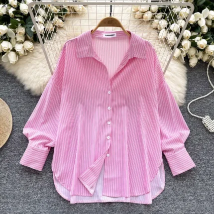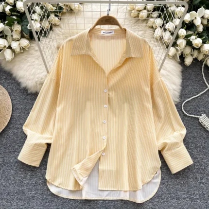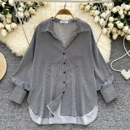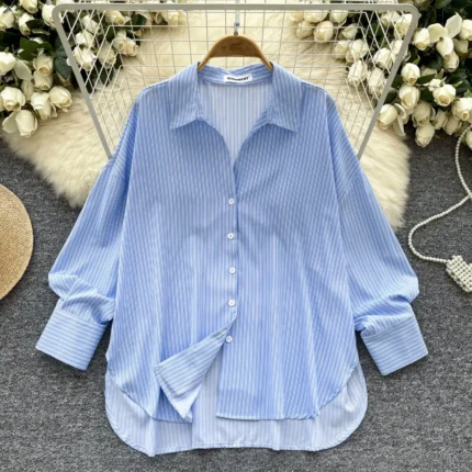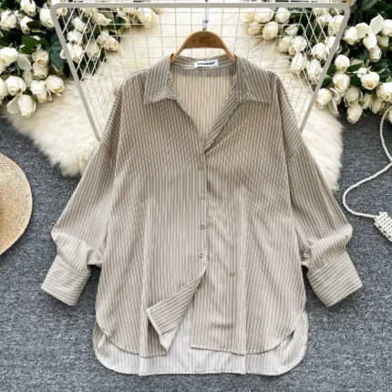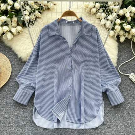 New Style Women’s Shirt, Versatile Collar, Single-Breasted Cardigan, Striped Shirt, Casual Top