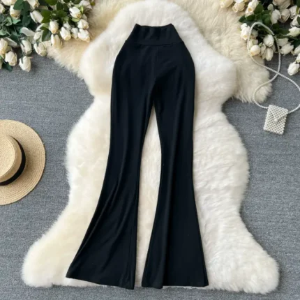 Summer style, high-waisted, slim fit, casual, versatile, slightly flared long pants