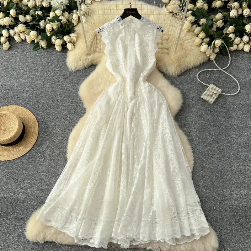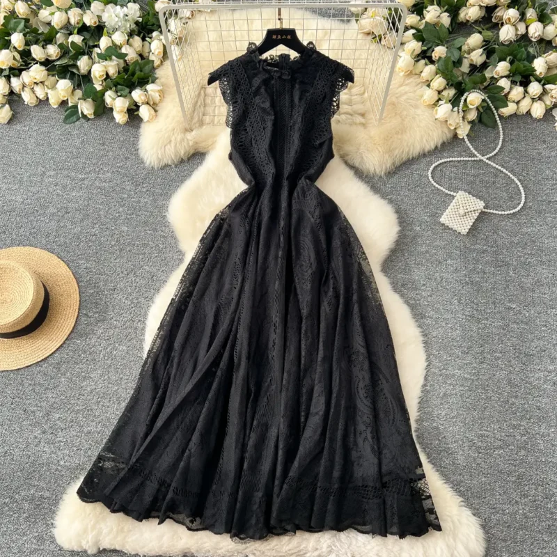 Crochet embroidery strap waist waist royal sister light luxury temperament long skirt