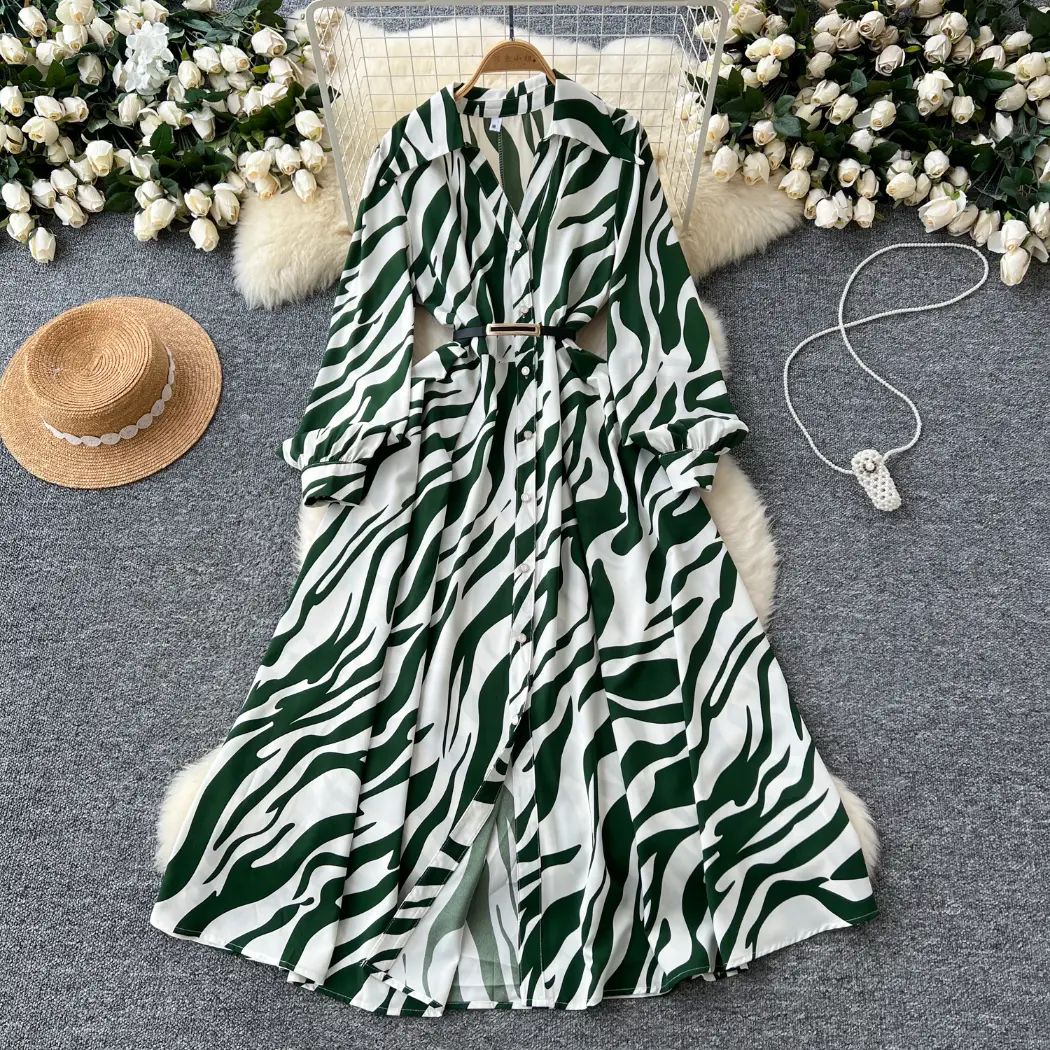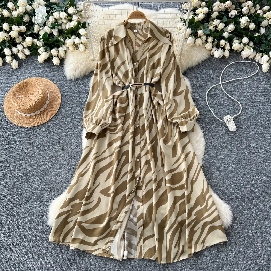 Autumn French retro print dress for women