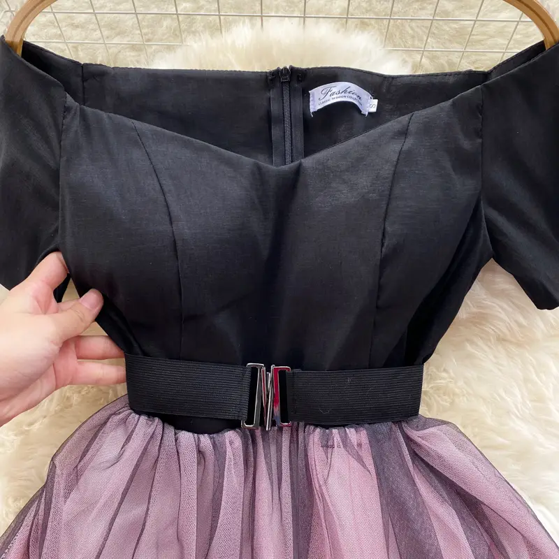 Be the first to review “Contrasting one-shoulder dress” Cancel reply
