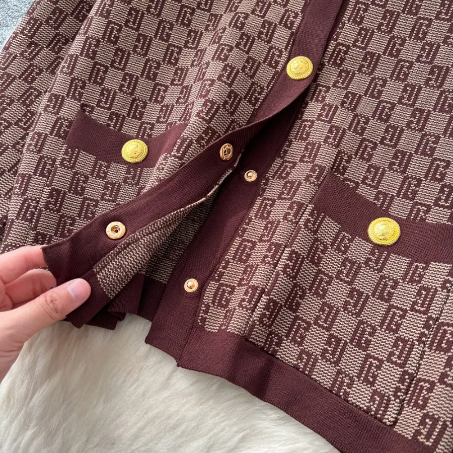 Be the first to review “European-style chic and sophisticated two-piece set: round neck long-sleeved knit top with metal buckle and high-waisted wide-leg pants.”