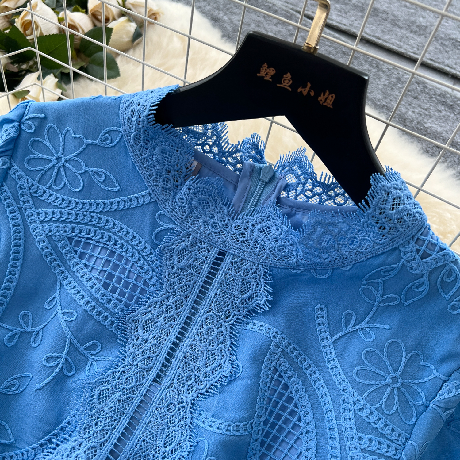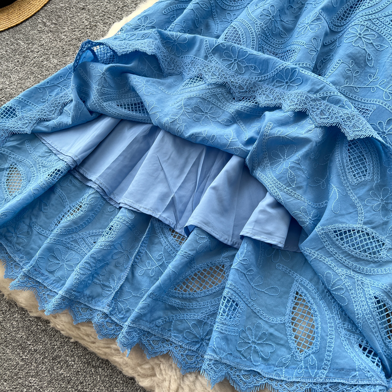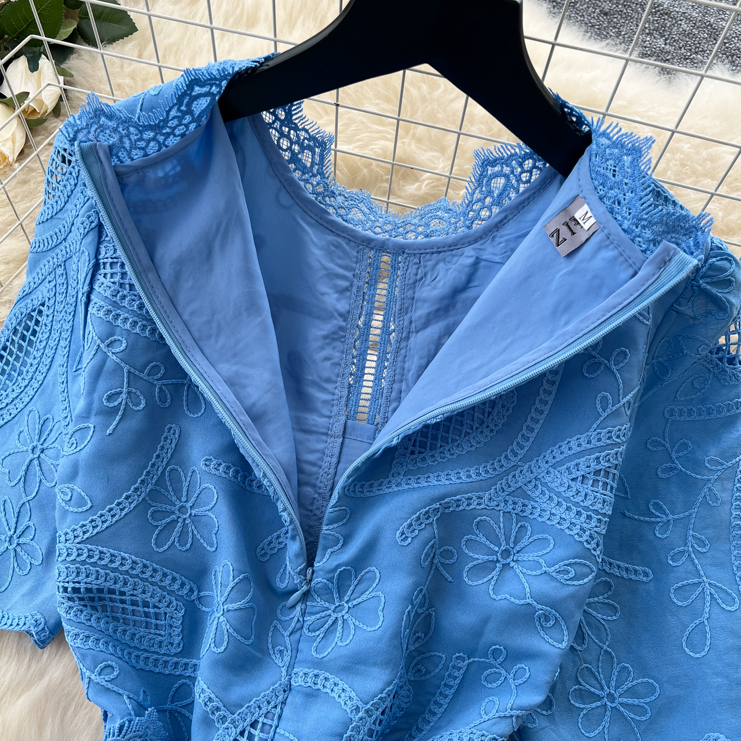 French high-end retro heavy industry embroidered waist short-sleeved dress