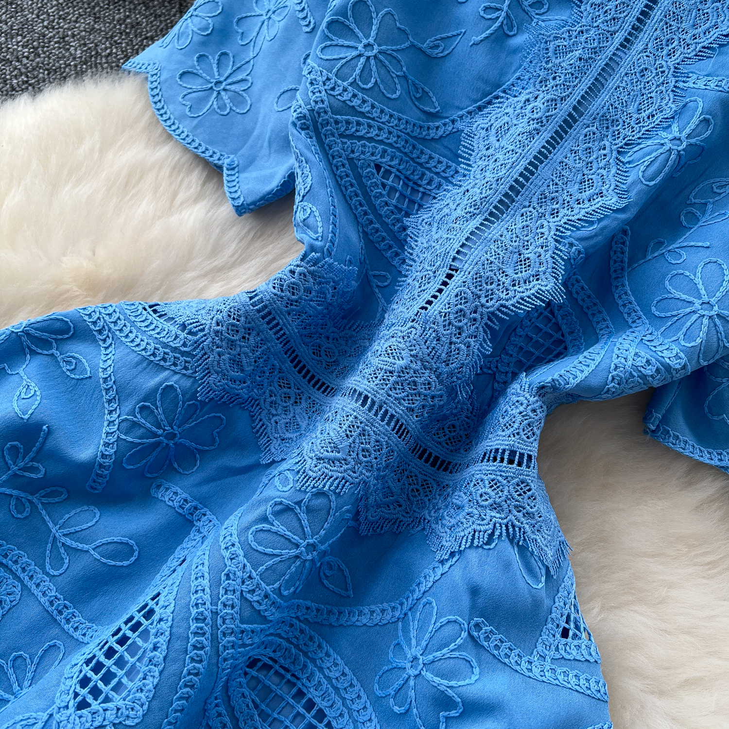 Fabric: 100% Polyester Fiber. Presenting a true work of art, the French high-end retro heavy industry embroidered waist short-sleeved dress encapsulates timeless sophistication with a modern twist. This dress is not just a garment – it’s a celebration of intricate craftsmanship and iconic French style, designed for individuals who appreciate unique fashion statements. With high-quality embroidery and a flattering waist design, this dress assures you elegance, comfort, and versatility like no other.