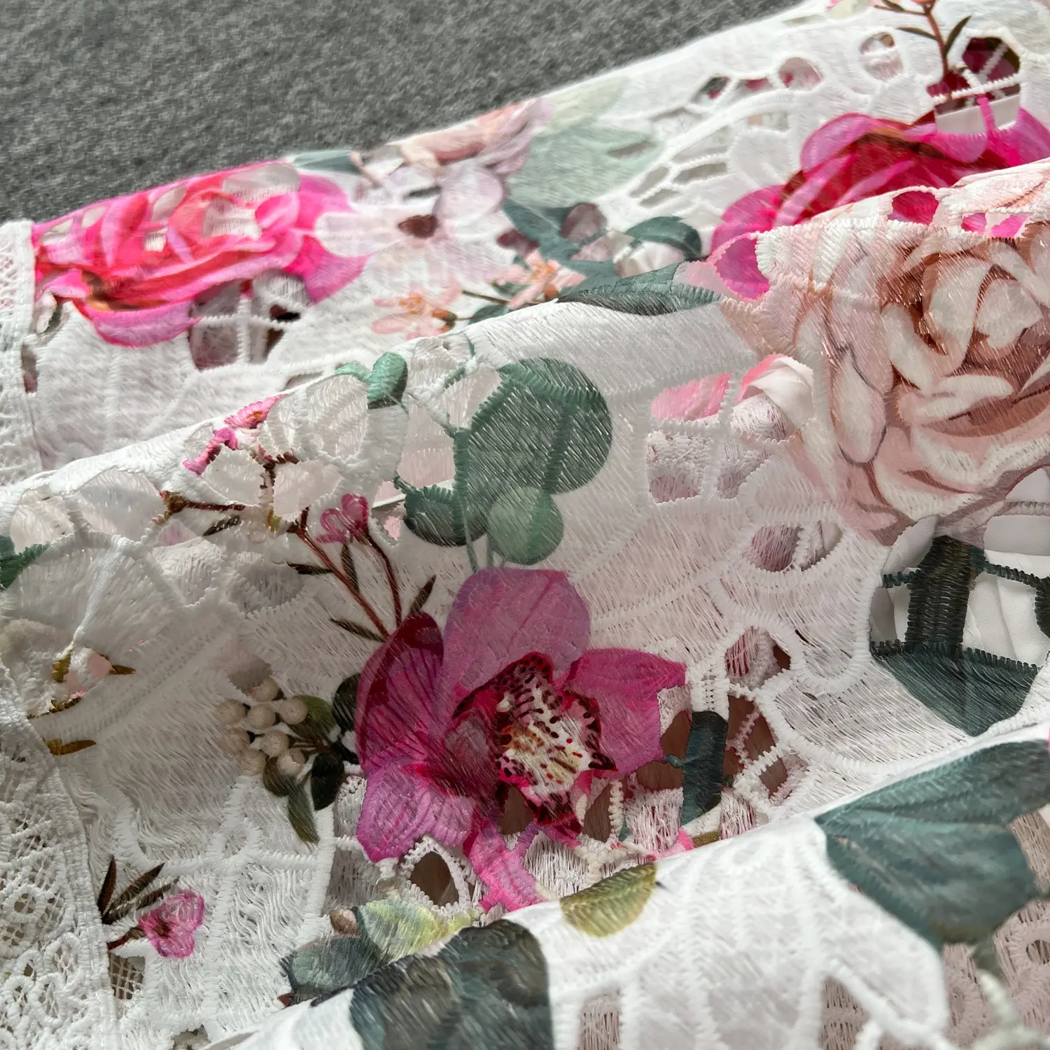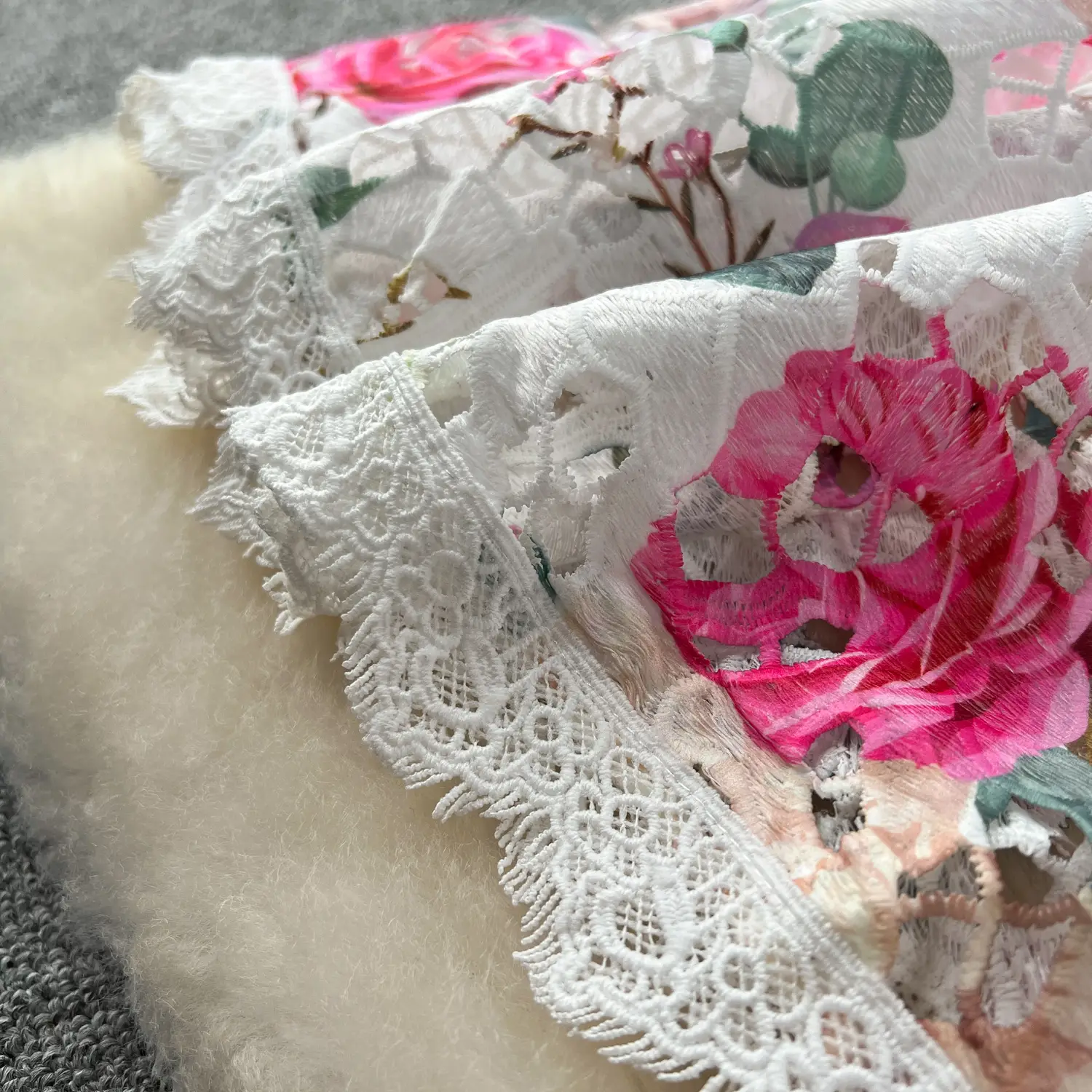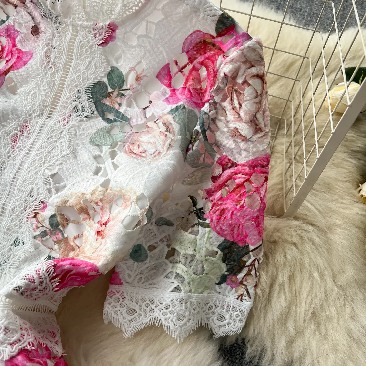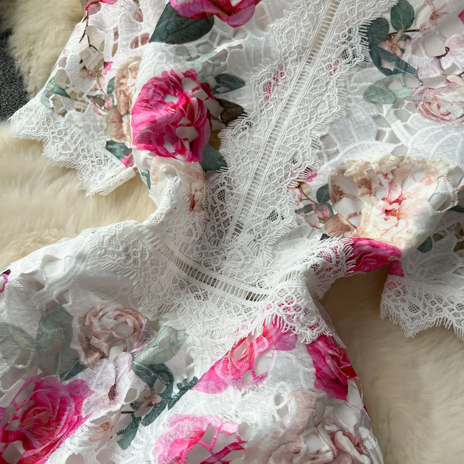 French retro elegant lace splicing printed waist-cinching elegant dress