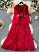 Step into sophistication with the Three-dimensional Lace Lantern Sleeve Strap Waist Slimming Pleated Dress. Designed to elevate your wardrobe, this stunning piece combines timeless elegance with modern details, making it a must-have addition for any fashion enthusiast. Its exquisite three-dimensional lace pattern brings a luxurious texture, ensuring you stand out effortlessly at any event or gathering.
