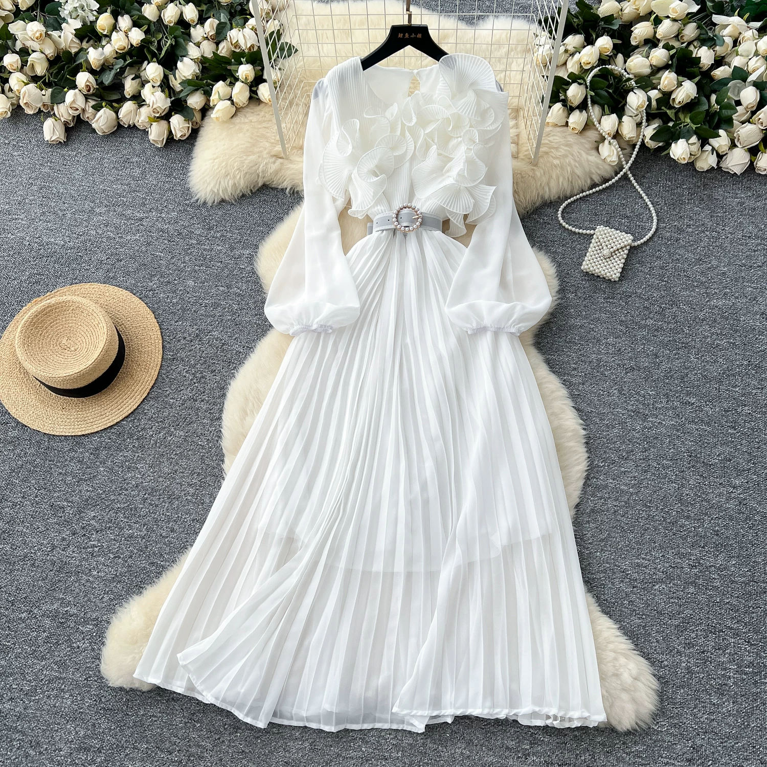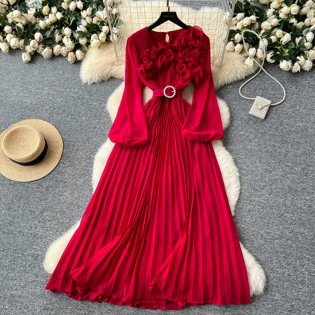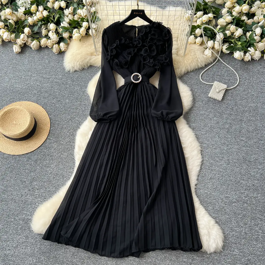 Be the first to review “Three-dimensional lace lantern sleeve strap waist slimming pleated dress” Cancel reply