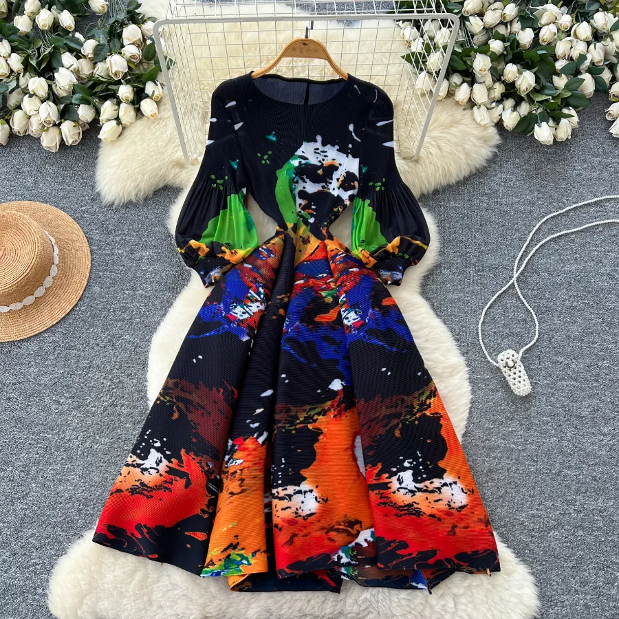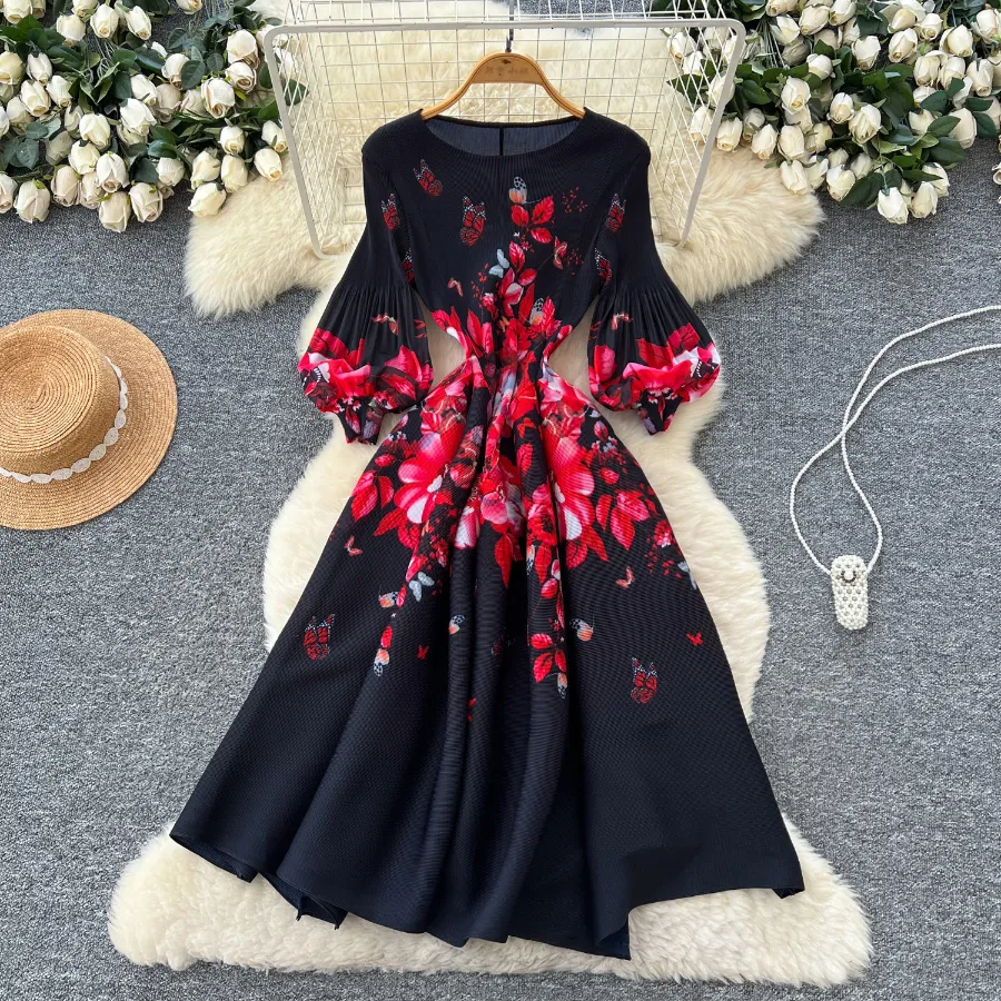 Watermelon Red French-style long dress with a flattering silhouette